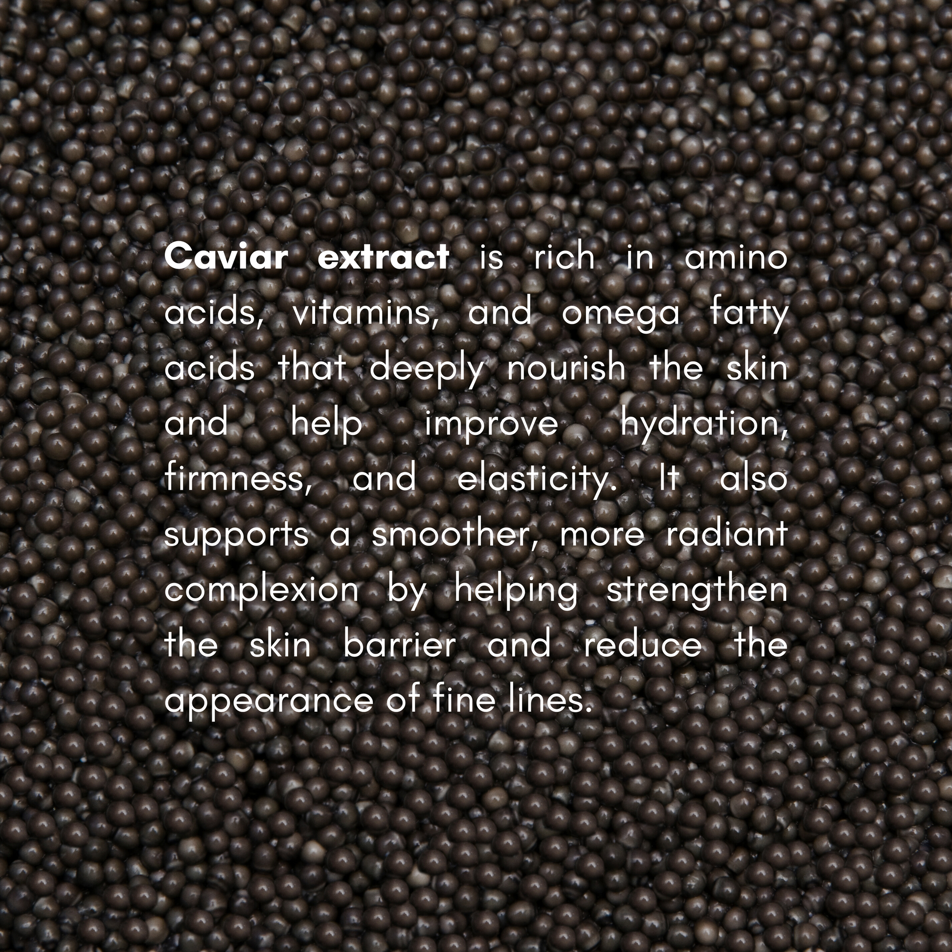 AQUA (WATER), ETHYLHEXYL METHOXYCINNAMATE, PEG-20 STEARATE, C12-15 ALKYL BENZOATE, CETEARYL ALCOHOL, DIBUTYL ADIPATE, GLYCERYL STEARATE, PEG-100 STEARATE, GLYCERIN, TOCOPHERYL ACETATE, PROPYLENE GLYCOL, PANTHENOL, DIMETHICONE, MANNITOL, LACTOSE, MICROCRYSTALLINE CELLULOSE, ACRYLATES/AMMONIUM METHACRYLATE COPOLYMER, HYDROXYPROPYL METHYLCELLULOSE, RETINYL PALMITATE, TRIETHANOLAMINE, CARBOMER, CAVIAR EXTRACT, TALC, CAPRYLIC/CAPRIC TRIGLYCERIDE, TRIETHYL CITRATE, MICA, MACADAMIA TERNIFOLIA SEED OIL, PERFUME, PHENOXYETHANOL, CAPRYL GLYCOL, ETHYLHEXYLGLYCERIN, ALL ANTOIN, BISABOLOL , DISODIUM EDTA, TRIBEHENIN, BIOSACCHARIDE GUM-1, CERAMIDE 2, PEG-10 RAPESEED STEROL, HYDROXYPROPYL CYCLODEXTRIN, PALMITOYL TRIPEPTIDE-38, PALMITOYL OLIGOPEPTIDE, CI 77891, CI 77499.